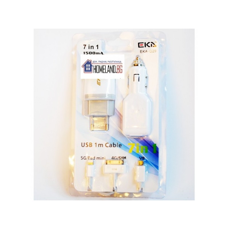 EKA-Q29 USB кабел + зарядно за кола + адаптор ЕС A изход USB адаптер