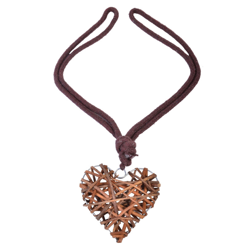 Декоративен аксесоар за прибиране на пердета и завеси във формата на сърце в кафяви нюанси.