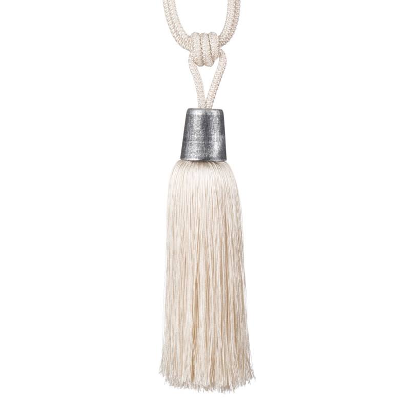 Декоративно въже с пискюл в цвят екрю за превързване и задържане на завеси и пердета.