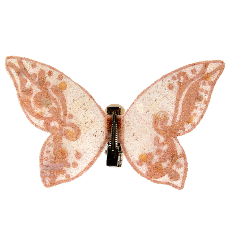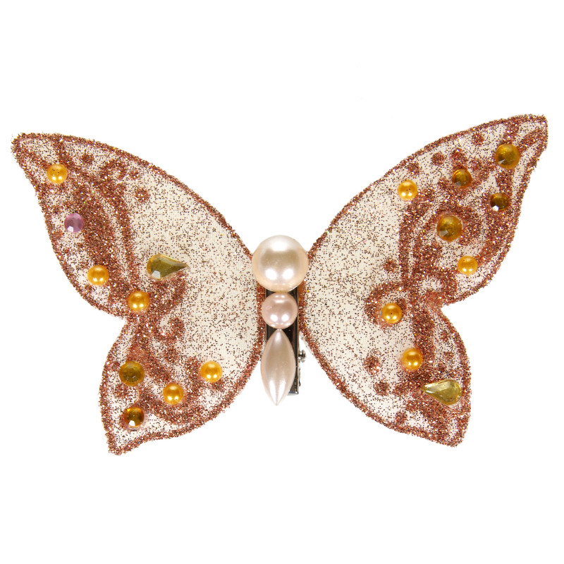 Декоративен аксесоар за пердета и завеси във формата на пеперуда в кафяви нюанси с блестящи частици брокат и клипс за лесен монтаж.