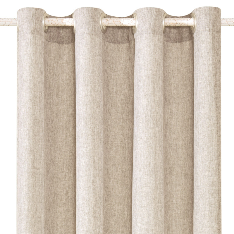 Завесата има универсални метални халки с диаметър 4 см., позволяващи окачване както на тръбен корниз, така и на PVC или метална релса.