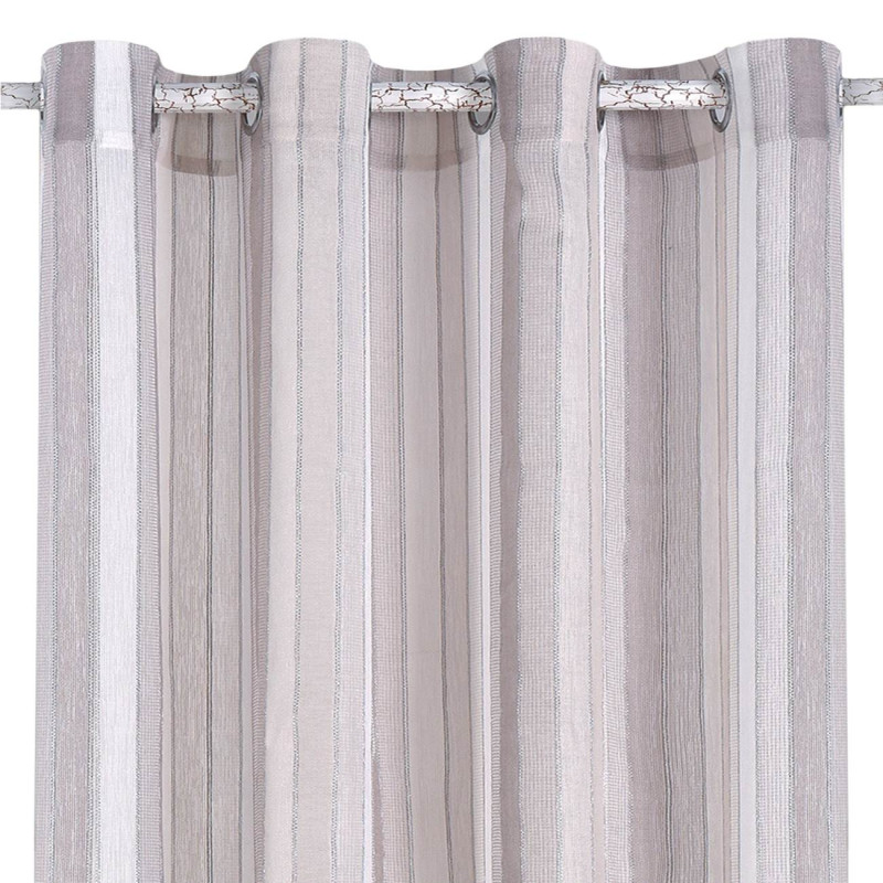 Стилна и качествена завеса, изработена от полиестер с раирани шарки в пастелни тонове, която гарантира уют и комфорт в интериора.