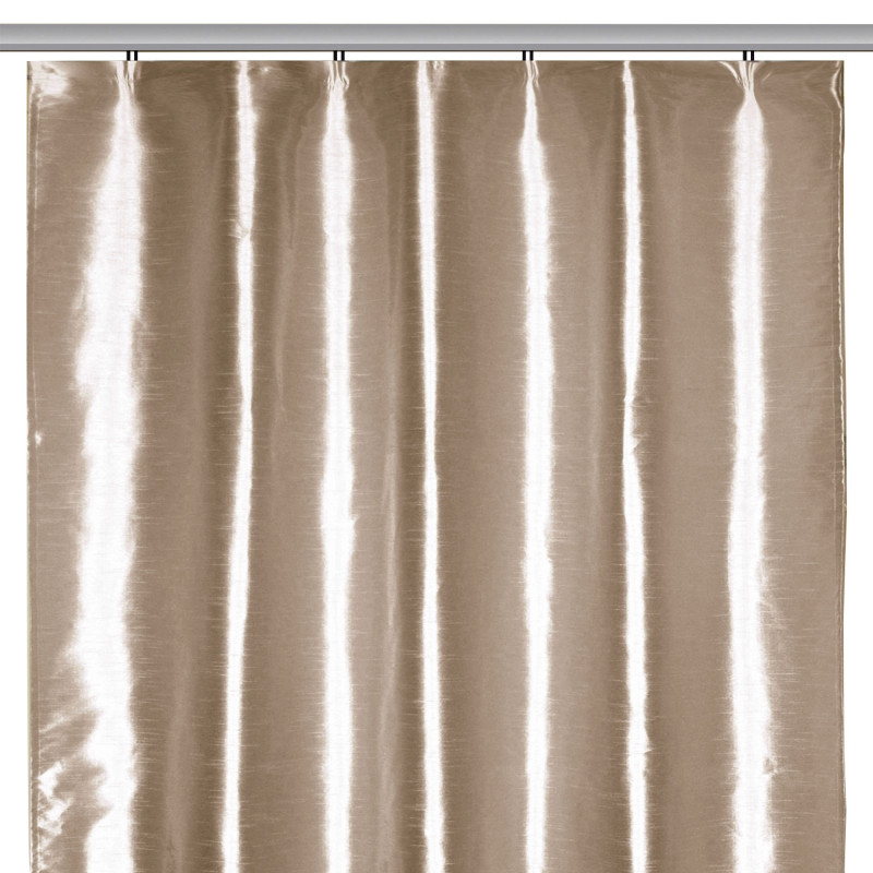 Завесата има универсални кукички, позволяващи окачване както на тръбен корниз, така и на PVC или метална релса.