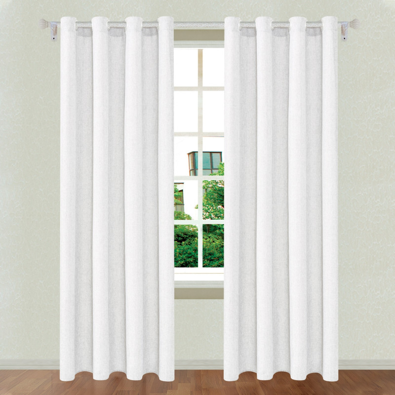Класическа стилна завеса, изработена от висококачествена материя, наподобяваща лен в бял цвят, която придава допълнителна елегантност и уют в интериора през всички сезони.