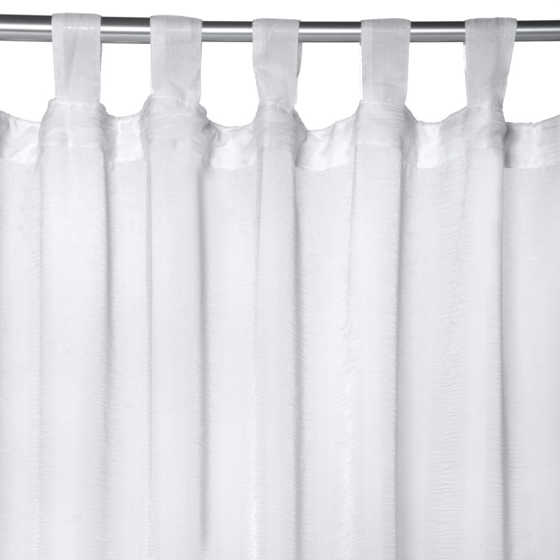Завесата е с универсални куки с дължина 10 см., позволяващи окачване както на тръбен корниз, така и на PVC или метална релса.