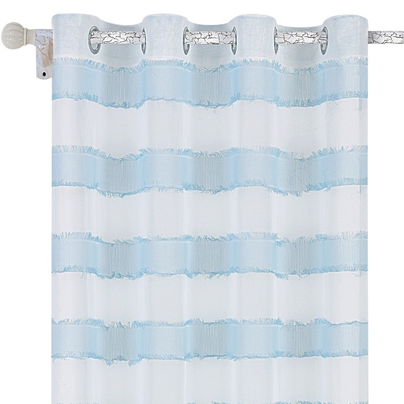 Стилна полупрозрачна завеса, изработена от полиестер с раирани шарки в синьо-бели нюанси, която придава допълнителен уют и комфорт на интериора през всички сезони.