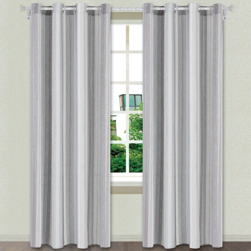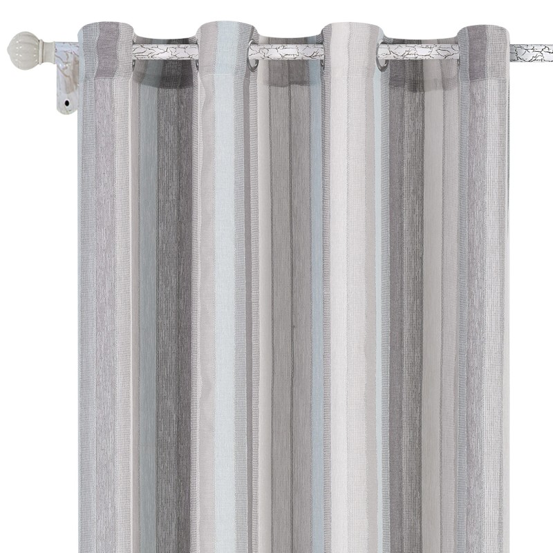 Класическа завеса, изработена от полиестер с раирани шарки в сиви нюанси, която внася допълнителен уют и комфорт на интериора през всички сезони.