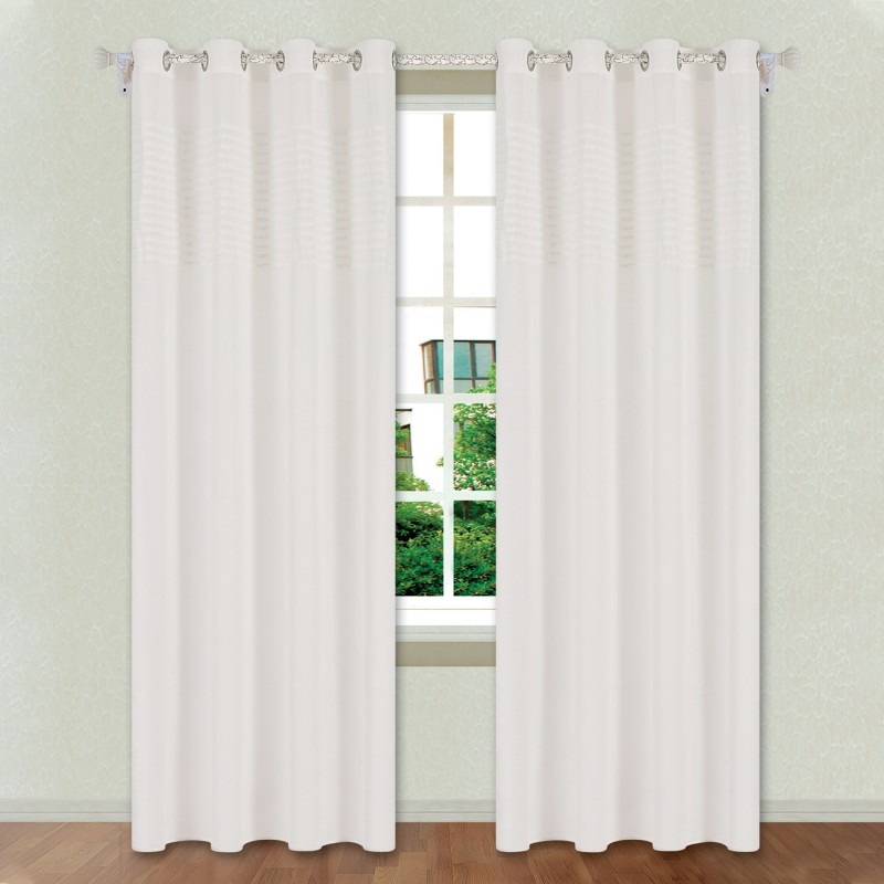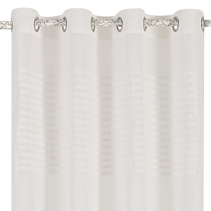 Класическа елегантна завеса, изработена от полиестер в бял цвят с дискретни хоризонтални линии, която придава допълнителен стил и уют в интериора през всички сезони.