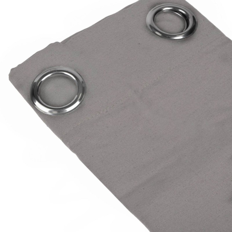 Завесата е с функционални метални халки с диаметър 4 см., позволяващи окачване както на тръбен корниз, така и на PVC или метална релса.