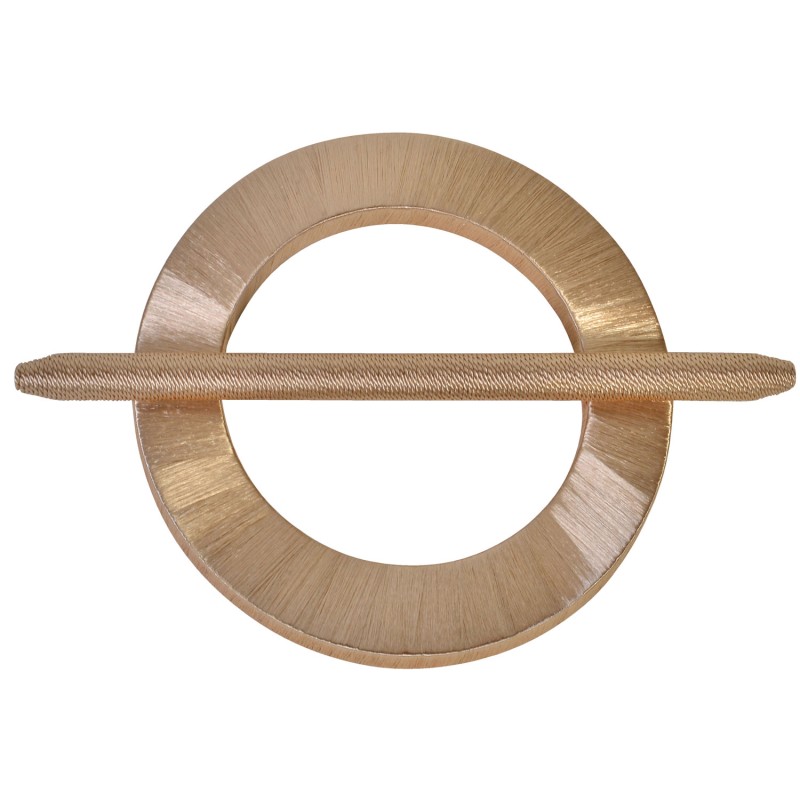 Декоративен аксесоар за прибиране на пердета и завеси в кръгла форма, изработен от дърво в естествен цвят.