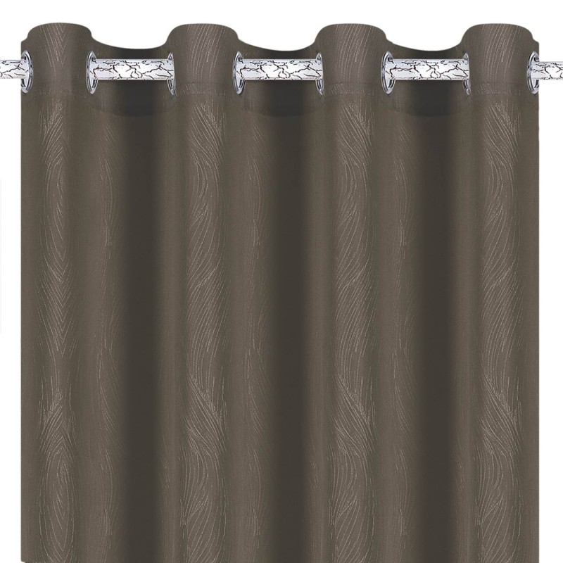 Стилна и елегантна завеса, изработена от полиестер в тъмно кафяв цвят с красиви декоративни линии, която придава допълнителен комфорт и уют в интериора през всички сезони.