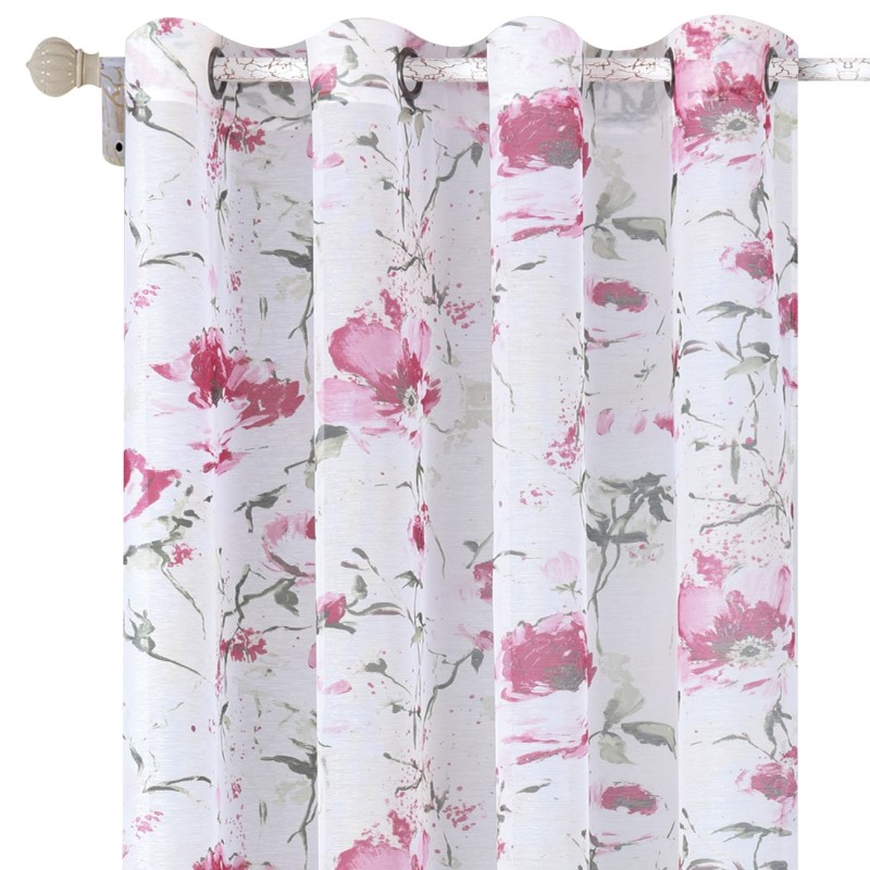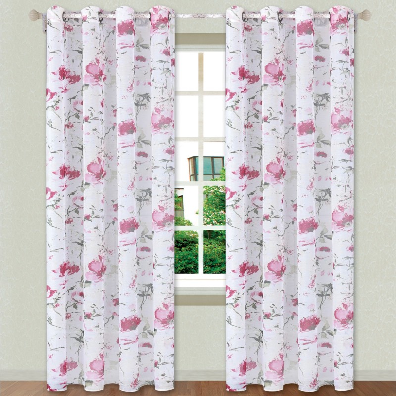 Полупрозрачна колоритна завеса, изработена от полиестер с красив принт на цветя в червени нюанси, която внася уют и комфорт през всички сезони.