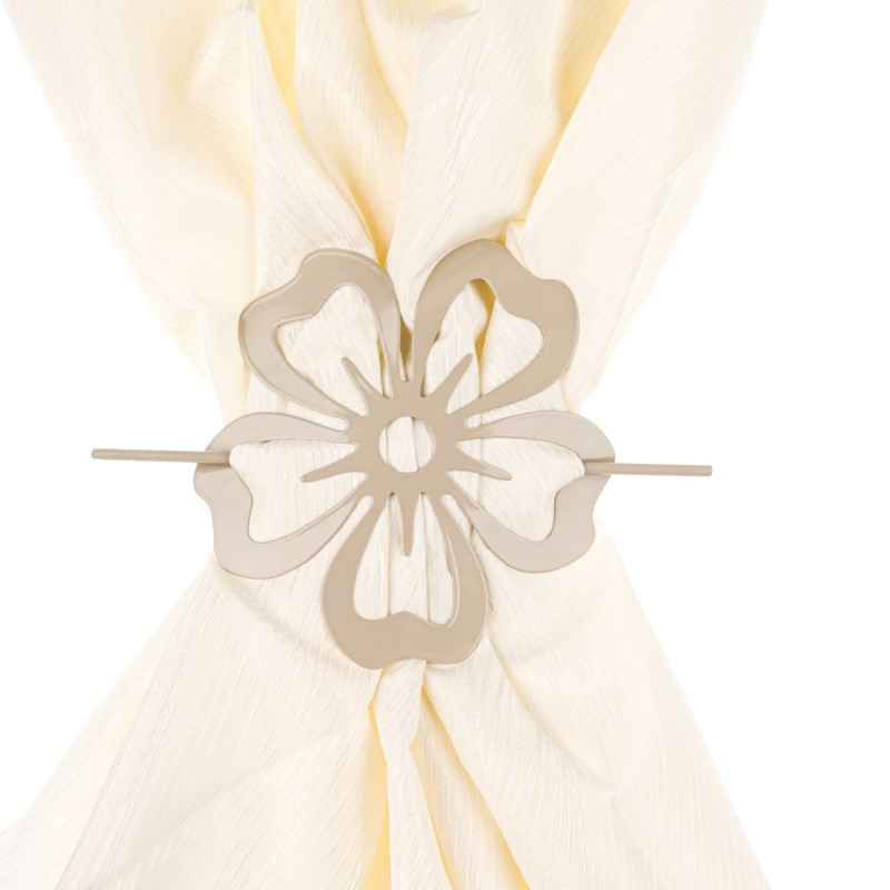 Декоративна щипка за прибиране на пердета и завеси в формата на красиво цвете в бежов цвят.