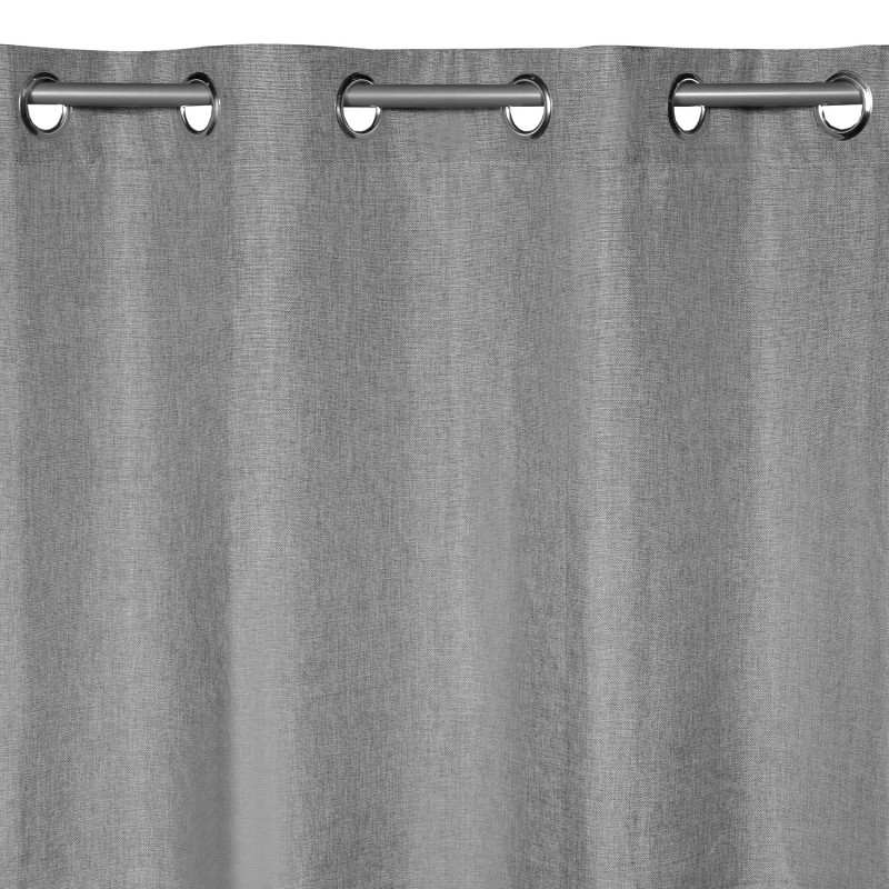 Завесата е с универсални метални халки с диаметър 4 см., позволяващи окачване както на тръбен корниз, така и на PVC или метална релса.