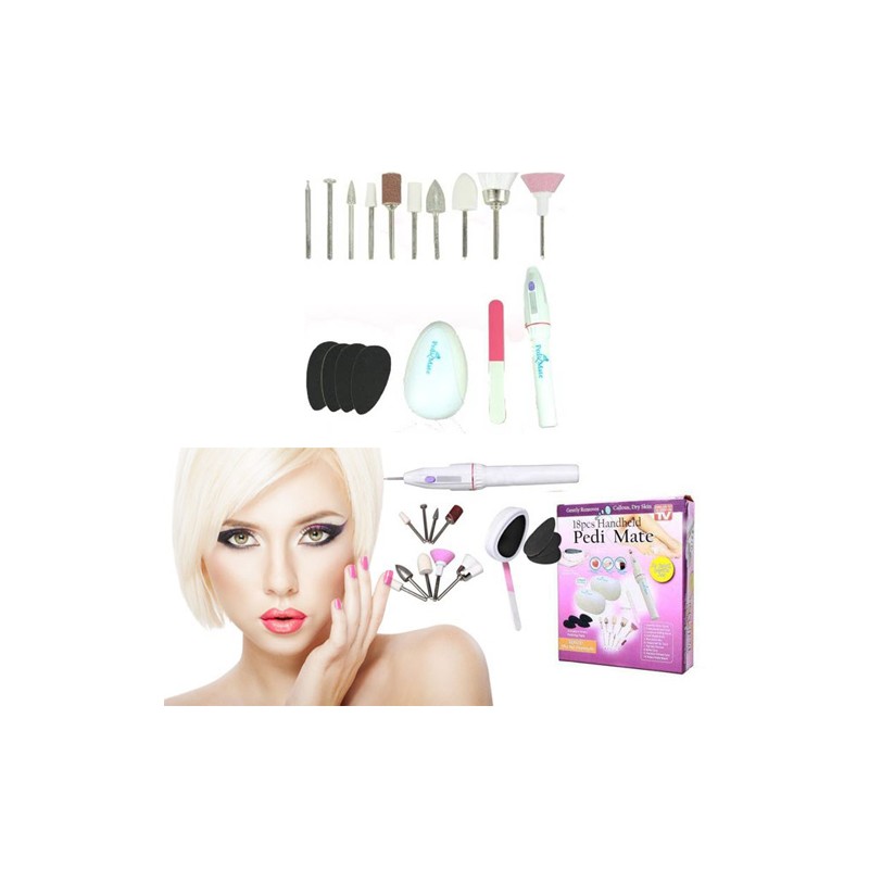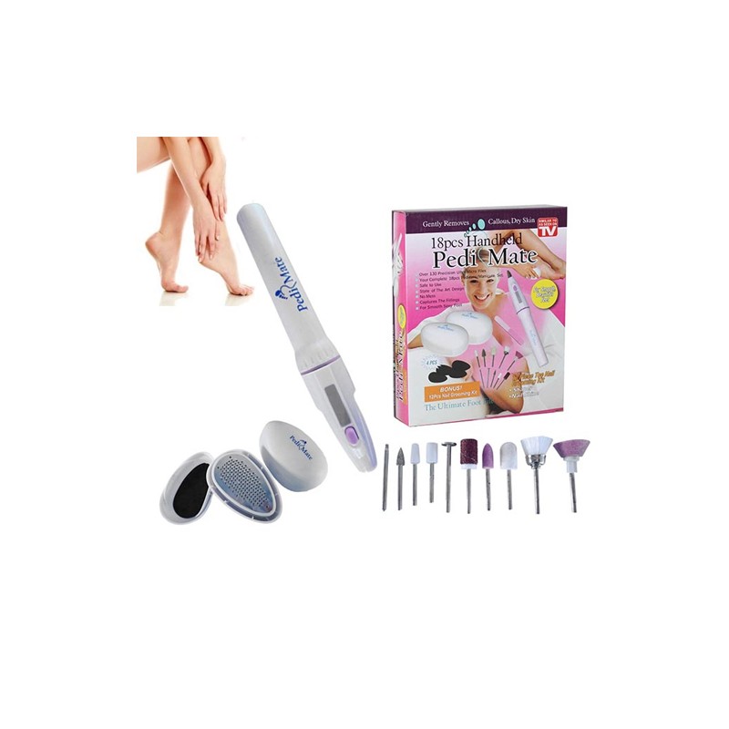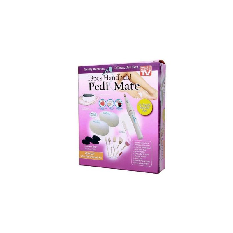 - Pedi Mate е в комплект от 18 части и съдържа всичко, което ще ви е необходимо по пътя ви към съвършените крачета и ръце