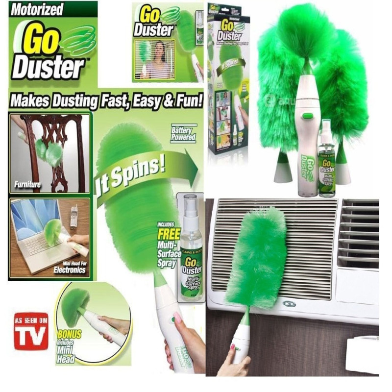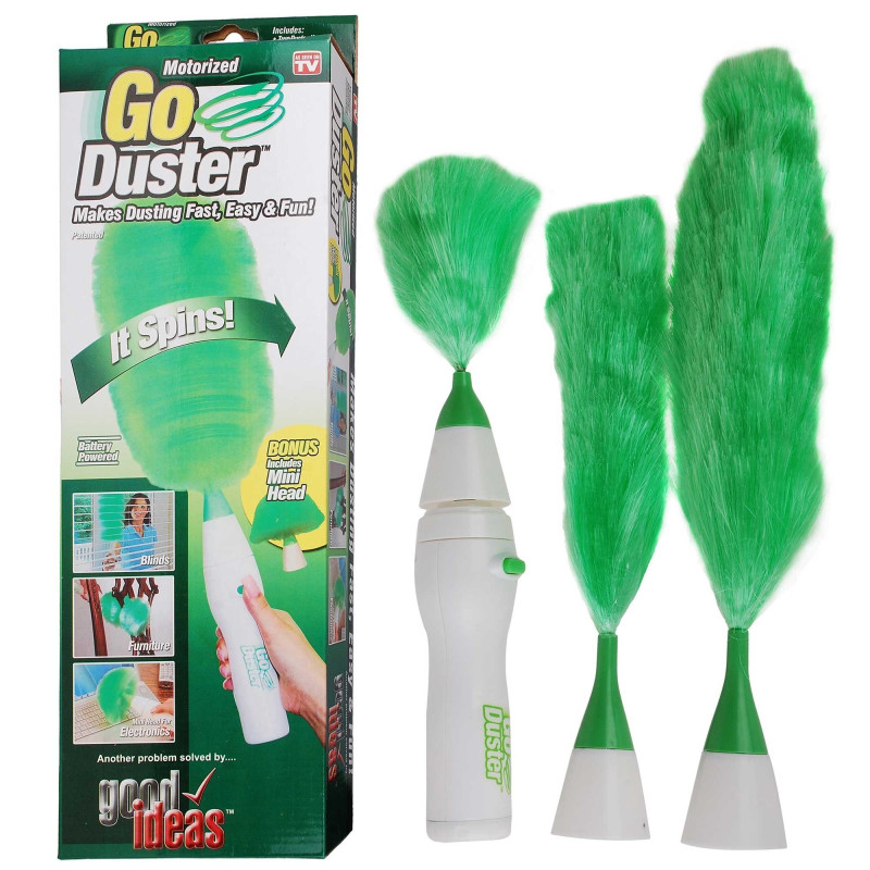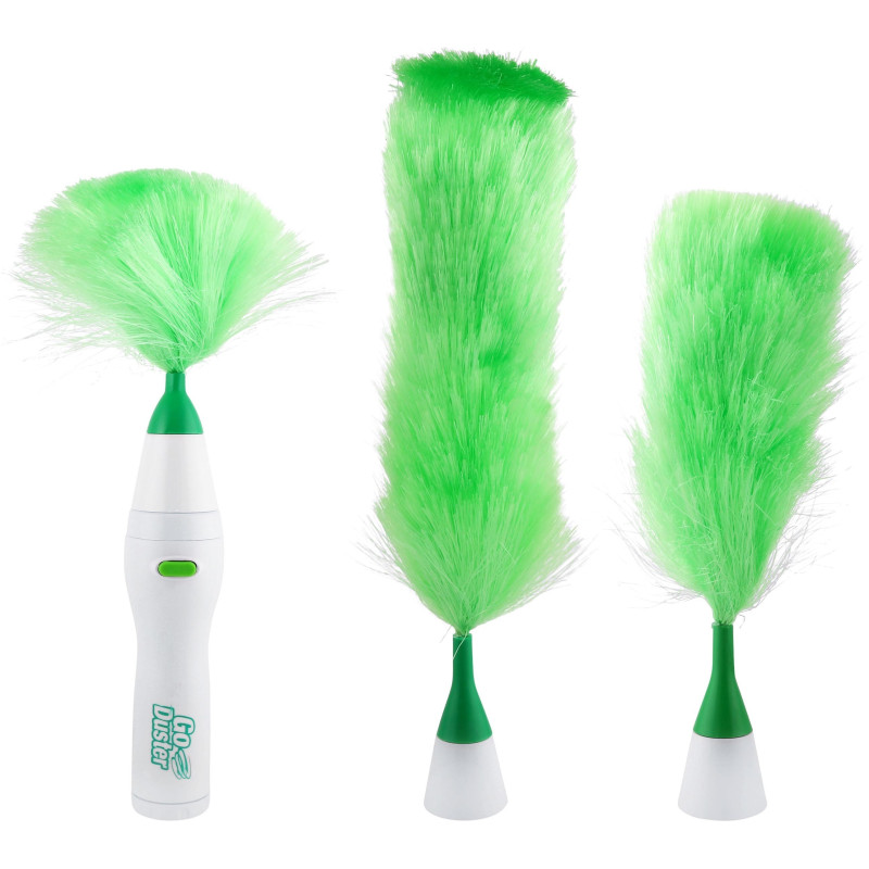 Четката за прах Go Duster с 3 сменяеми приставки е иновативно устройство, което ще ви помогне да направите почистването на прах в дома или офиса лесно и забавно. Тази електрическа четка премахва натрупаната мръсотия само с едно натискане на бутон, благодарение на моторизираната си глава, която започва да се върти и събира праха за кратко време. Микрофибърните влакна достигат до всяка повърхност, включително рафтове, разстояния между сувенири и книги, растения, техника и щори.