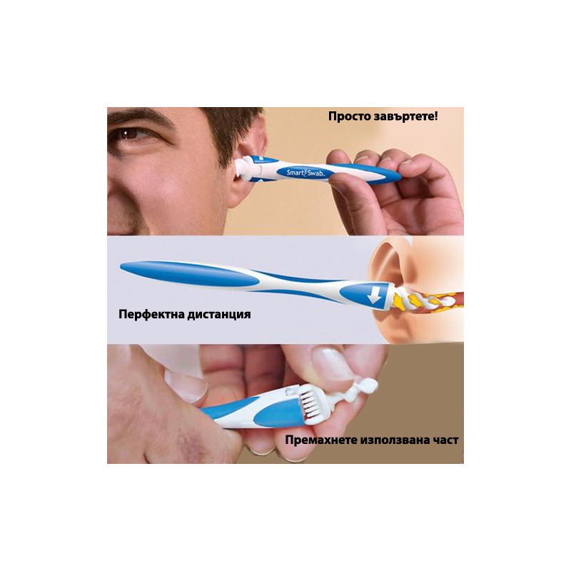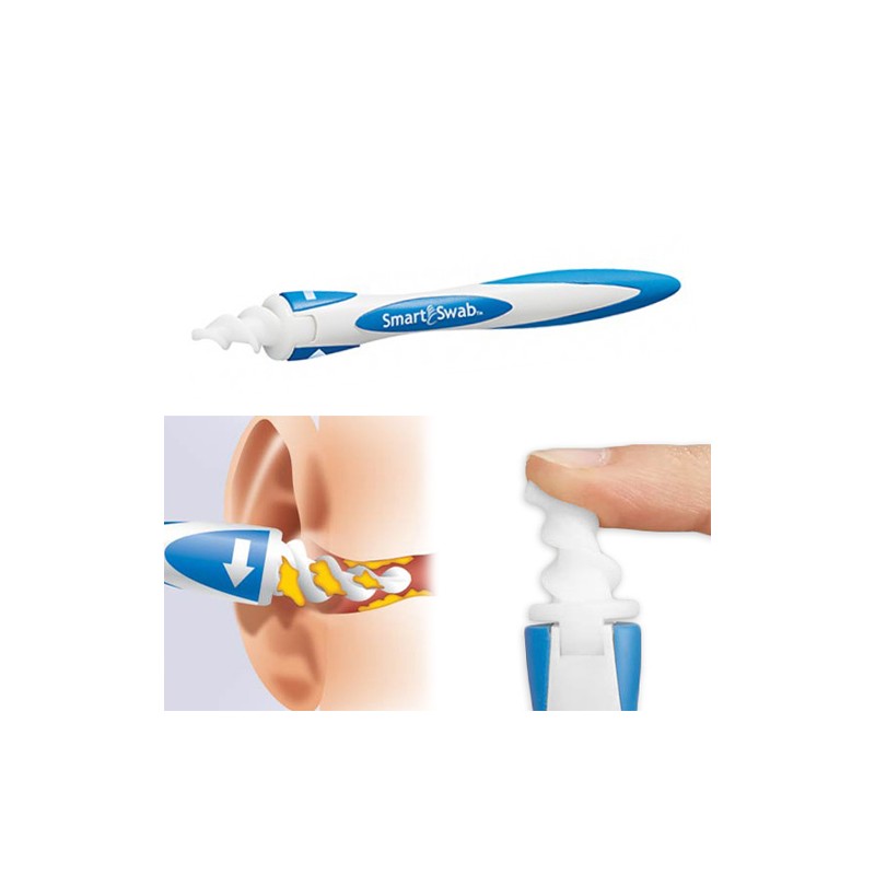 Благодарение на специализирания си дизайн Smart Swab почиства нежно ушите Ви без да причинява наранявания и болка, както с обикновените клечки за уши.