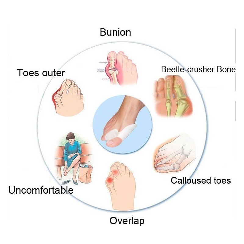 Изработени от висококачествен силикон, разделителите са меки и удобни за носене. Благодарение на своя универсален размер, те могат да се носят в обувки от всякакъв вид. След употреба, просто измийте ги с хладка вода, наръсете ги с талк и ги оставете да изсъхнат на стайна температура.