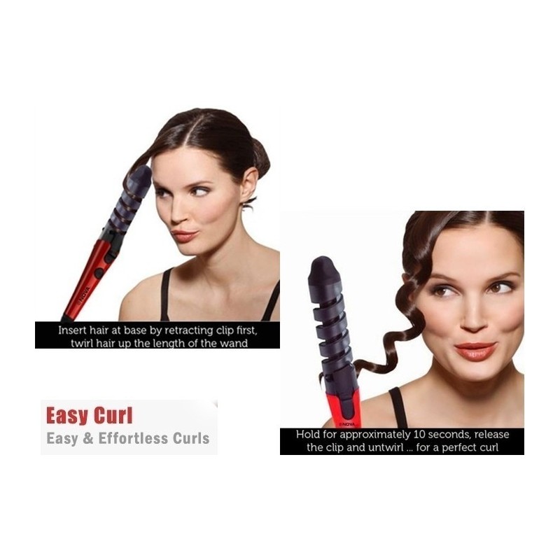 Дизайнът на машата за коса NOVA NHC-2007A е революционен. Нагряващата се част е във формата на спирала, като корпусът може да бъде избран между розов и червен цвят. Уредът е снабден с бутон, чрез който се включва и изключва, придружен от светлинен индикатор.