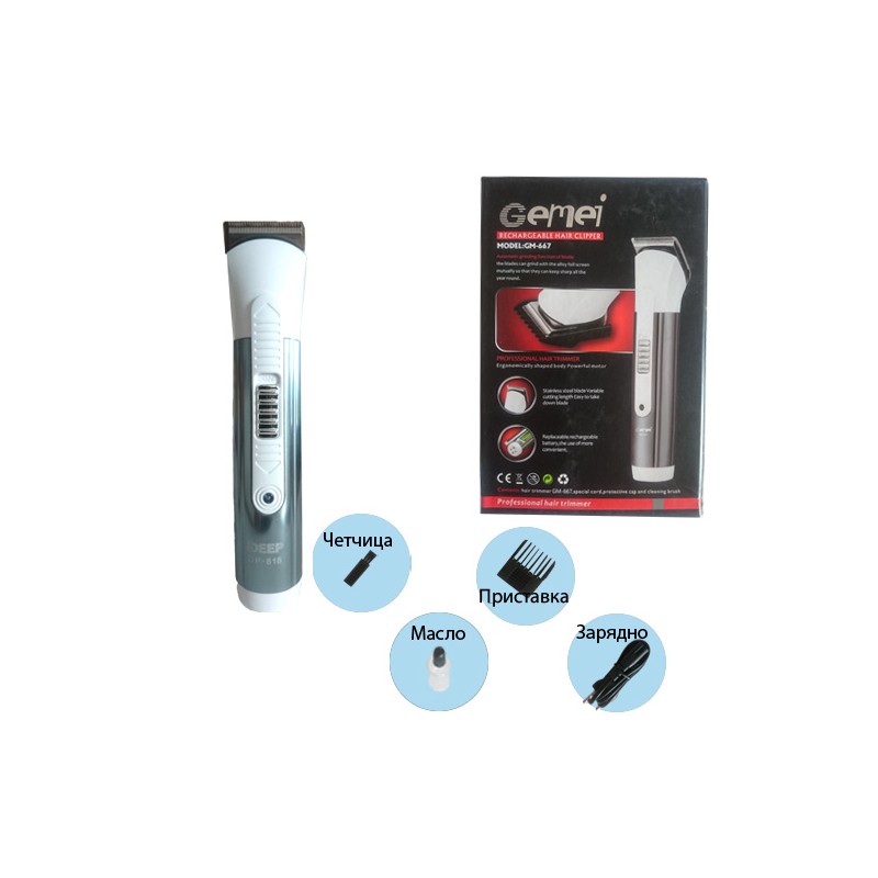 Gemei GM-667 е създаден с компактен, ергономичен дизайн, който позволява свободно движение на ръката при подстригване.