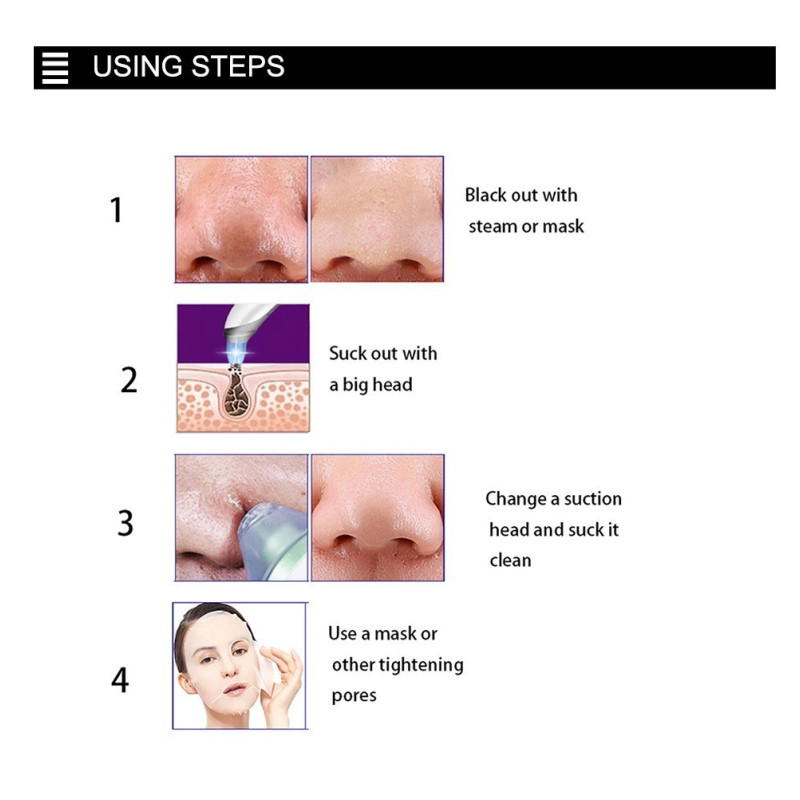 Лесен и удобен за употреба, нашият уред е акумулаторен и се зарежда чрез включения в комплекта USB кабел. Той е снабден с 4 накрайника, които предлагат различни функции за по-дълбоко почистване на кожата на лицето ви. Така можете да се насладите на безупречна кожа и да се освободите от неприятните проблеми, като пори, черни точки и бръчки.