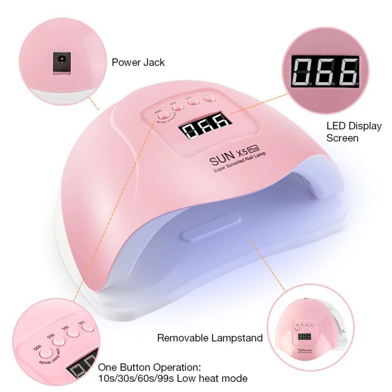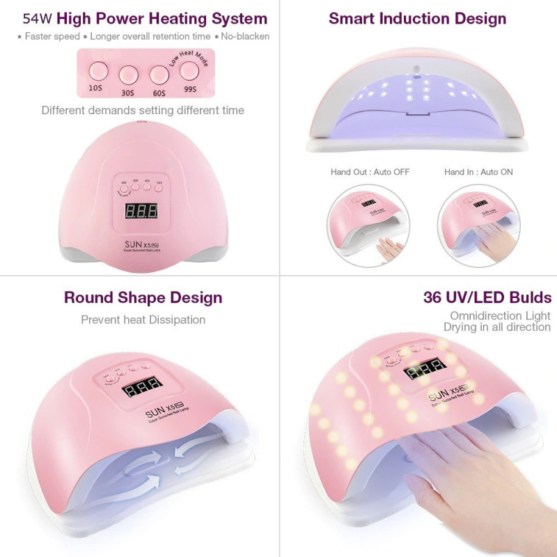 Лампата SunX5 MAX е удобна както за маникюр, така и за педикюр и изпича бързо и без шум. Нейният отворен дизайн позволява лесна употреба и побира ръка или крак, а дъното се сваля лесно. Освен това, тя генерира дневна светлина, а не ултравиолетова бяла светлина, което я прави безопасна за очите, кожата и ръцете.