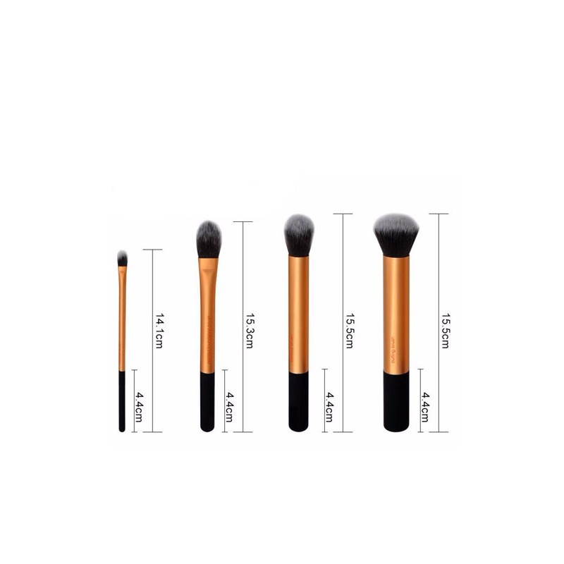 - Комплектът съдържа четири пълноразмерни четки в калъф със стойка.