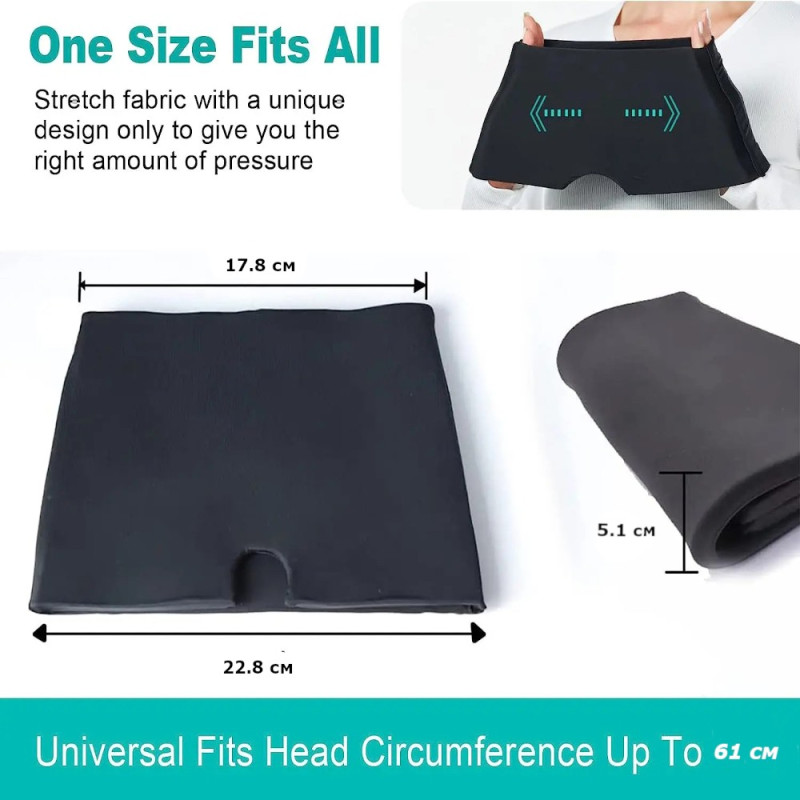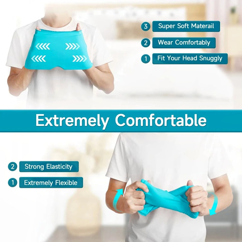 Тази охлаждаща маска против мигрена се отличава с дизайн от една част и осигурява пълно покритие на 360°, което гъвкаво се разтяга, за да пасне на различни форми на главата. Нашите охлаждащи маски за глава могат да се носят по два начина, могат да се използват като маска за очи с ефект на затъмнение, когато се опитвате да заспите бързо с мигрена или да покриете главата си при болезнени мигрени, без да пречат на нормалната ви работа.