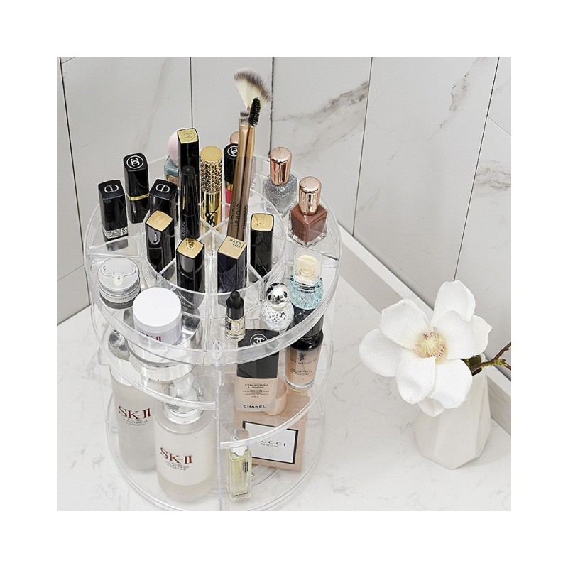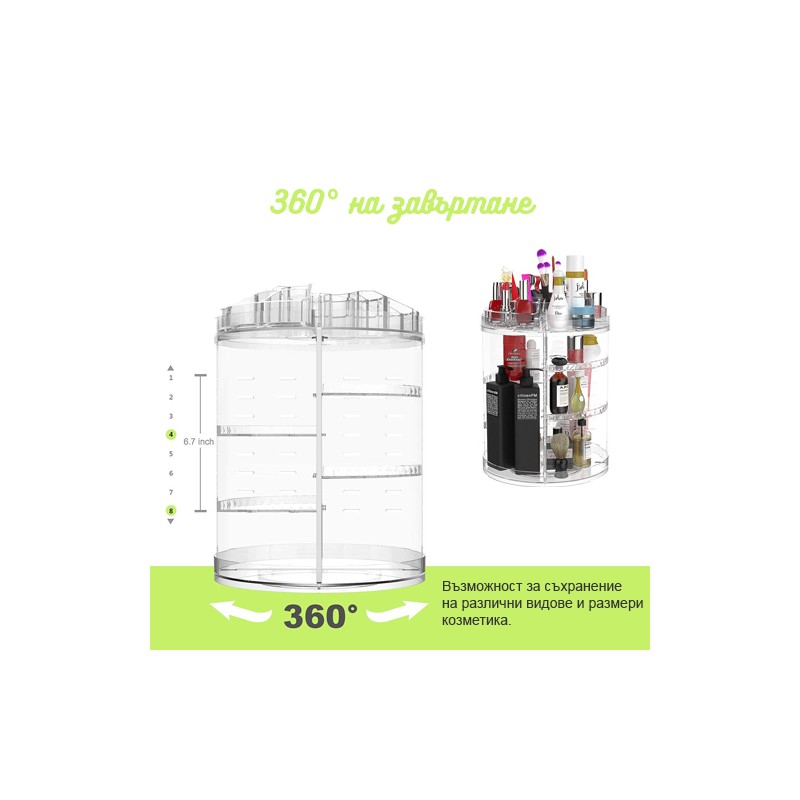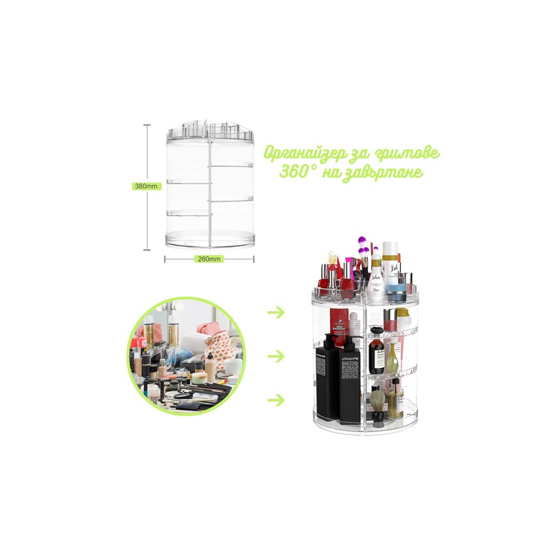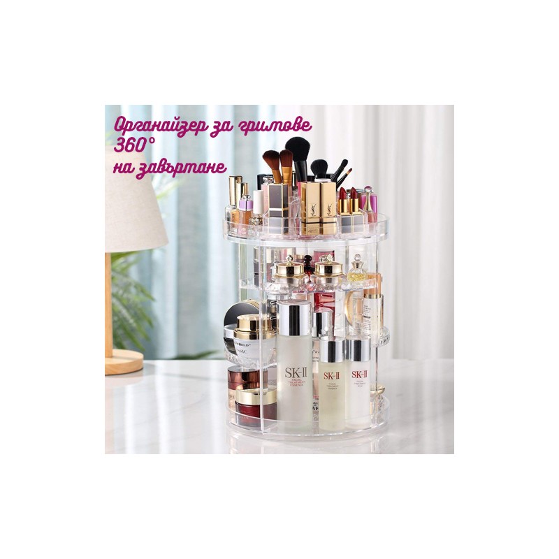 Новият прозрачен акрилен 360-градусов органайзер за гримове, ще Ви помогне да организирате Вашата козметика и да поддържате масата чиста и подредена.