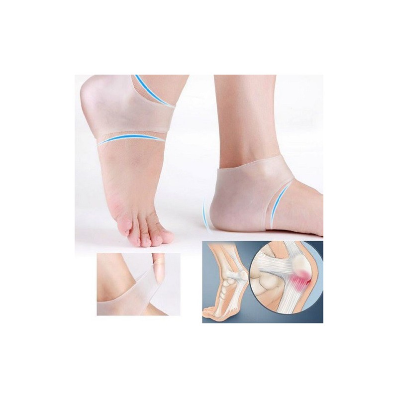 Силикониви чорапи за пети са изработени от антиалергичен медицински плътен силикон, който да постига доста по-голям комфорт при движение за разлика от всички останали традиционни чорапи. Тези силиконови чорапи обират всички сътресения и вибрации при движение и предпазват ходилата, глезените, мускулите и ставите от прекомерни натоварвания. Материала от който са направени тези анатомични чорапи не позволява на кожата да се поти и могат да се носят продължително време без това да внесе някакъв дискомофорт. Също така те осигуряват и една допълнителна защита от появата на пришки в областта на петата, а при наличие на такива ще предпазят кожата от разраняване и ще намалят болката. Изключително подходящи за носене и от хора с напукани пети!