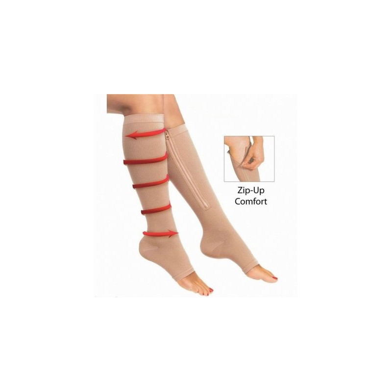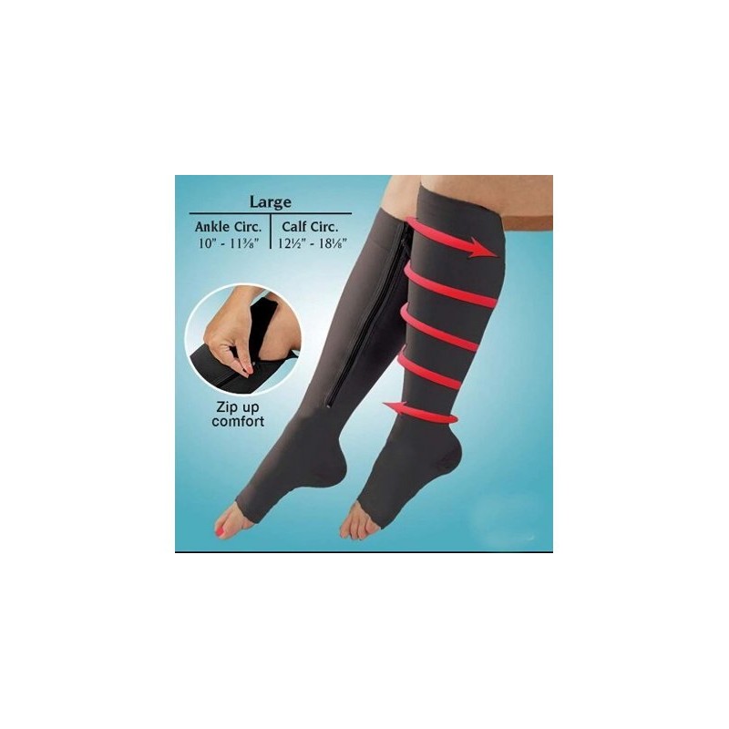 Изберете най-лесния начин за превенция при подуване на краката и болезнени разширени вени.Вземете тези компресивни чорапи за разширени вени с цип, които имат заздравяващ и терапевтичен ефект и подобряват циркулацията на кръвта Във вашите Крака. Чорапите са непълно невидими под дрехите , а вграденият цип осигурява удобно прилягане по кракаУдобният дизайн е идеален за дълги пътувания и спомага за облекчаване на подуването и задържането на течности. Тези компресивни чорапи за разширени вени с цип ще спомогнат за премахването на отоци, подувания и много други!