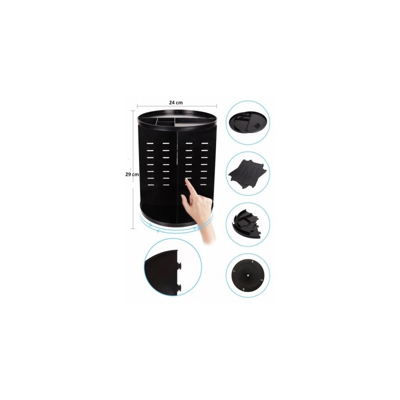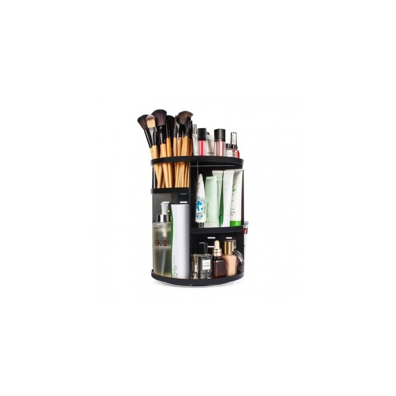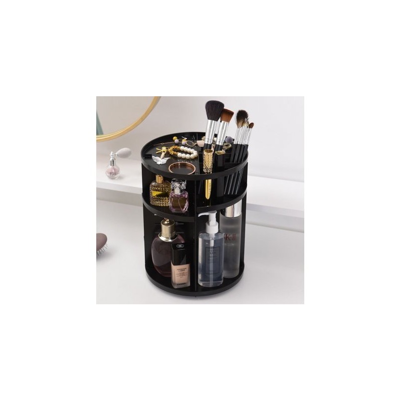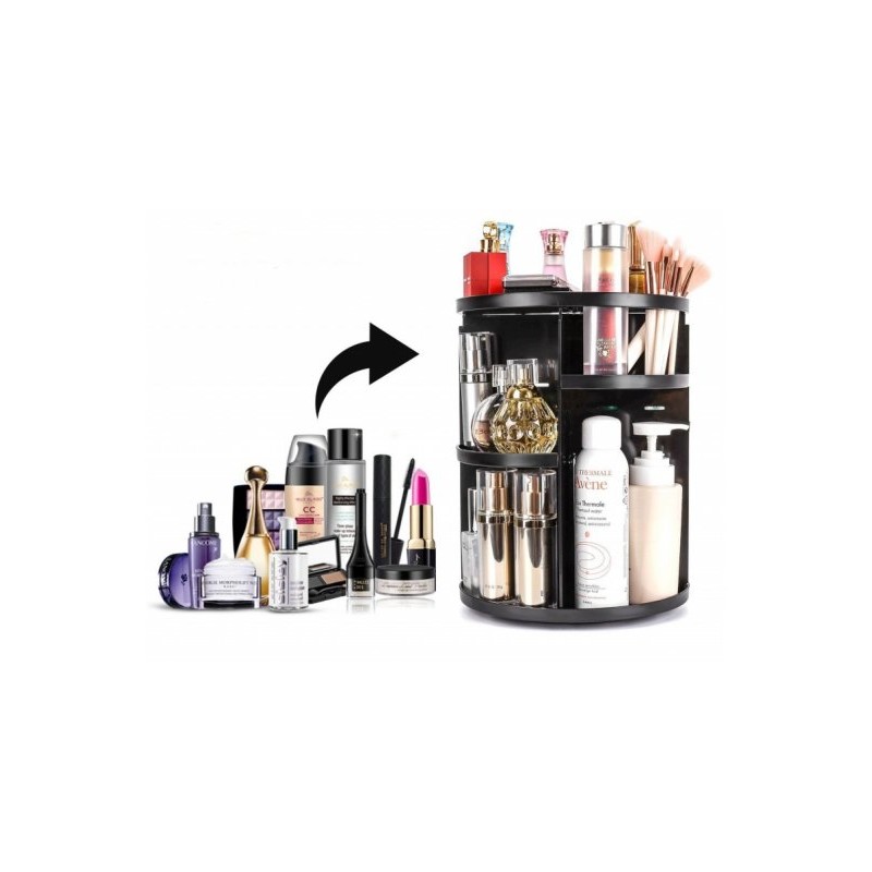 Много удобно решение за всяка дама - спретнат въртящ се органайзер за съхранение и сортиране на гримове, продукти за красота и много други аксесоари! С този стелаж ще организирате моментално цялата си козметика и с едно завъртане лесно ще откриете точно това, което търсите. Бързо, лесно и много практично. Красива организация за всички четчици, стикове, гримове, бижута, балсами за устни, червила, сенки, кремове, по-подредени от всякога! Спестете време като се организирате и се съсредоточете върху стайлинга си само с един поглед.
