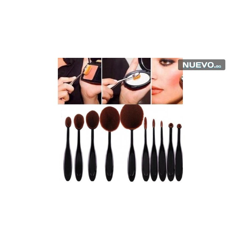 Представяме на Вашето внимание най-новият модел професионални четки за грим с овална форма, изработени от изключително мек изкуствен косъм. Те са подходящи за лесно и точно нанасяне на течен, сух или кремообразен грим. Благодарение на тях ще можете равномерно, бързо и меко да разнасяте желания грим, като по този начин няма да дразните нежната кожа на лицето си! В момента, това са най-актуалните и предпочитани четки на пазара, заради уникалната си и удобна овална форма, с която нанасянето на грим става изключително прецизно! С тях лесно, ще успявате да следвате всяка извивка на лицето си и да нанасяте с максимална точност.