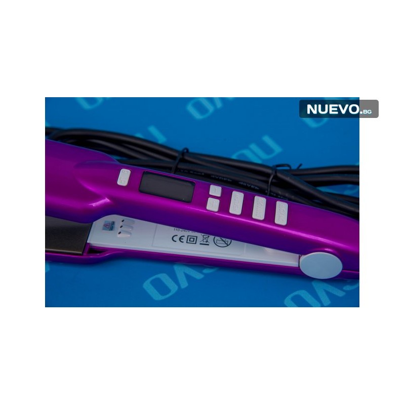 Пресата е с елегантен дизайн, с удобно въртящ се кабел, LED дисплей, чрез който да следите температурата, до която достига пресата и копчета, чрез които да регулирате температурата съобразена с нуждата на Вашата коса.