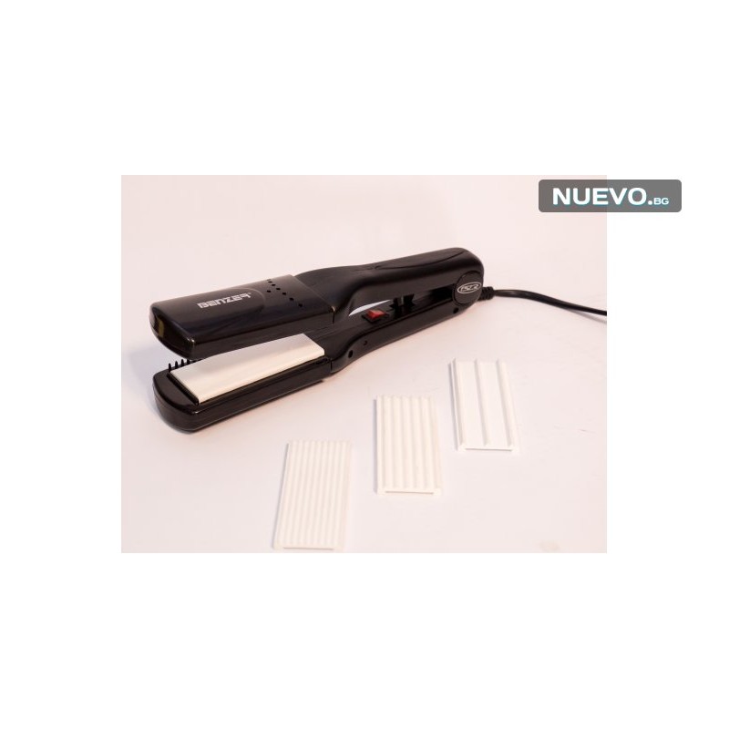 Уредът е бързо загряващ, с 4 вида плочки - за изправяне, ситни, по редки и най-редки вафлички. Удобна, функционална, мощна преса, която ще оформи косата Ви прекрасно и ще ѝ придаде обем. Въртящ се кабел за улеснена употреба, бутон за включване и изключване и много други възможности ще получите от пресата за коса на Benzer!