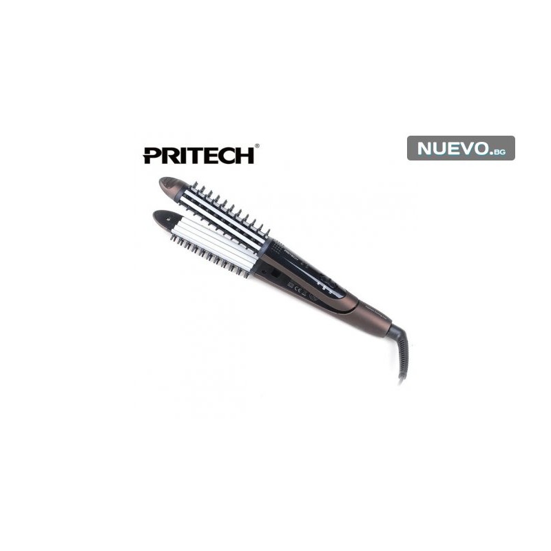 Запознайте се с професионален стайлър за коса Pritech 2в1. Този уникален уред Ви дава възможността да оформите косата си перфектно, вкъщи, а ефекта да бъде все едно сте посетили фризьорския салон. Със стайлъра едновременно, можете да изправяте и навивате косата си, както и да ѝ правите любимите на всички "вафлички".