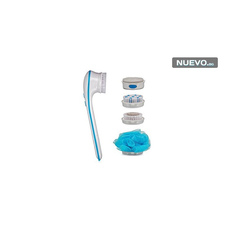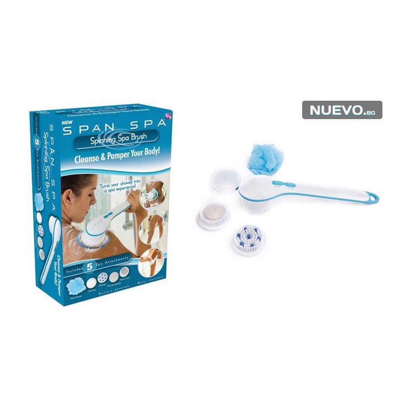 Spаn Spa e водоустойчива душ четка с дръжка, която не се плъзга и притежава 5 различни приставки, които ще Ви доставят изключителна наслада за кожата, докато си взимате душ.