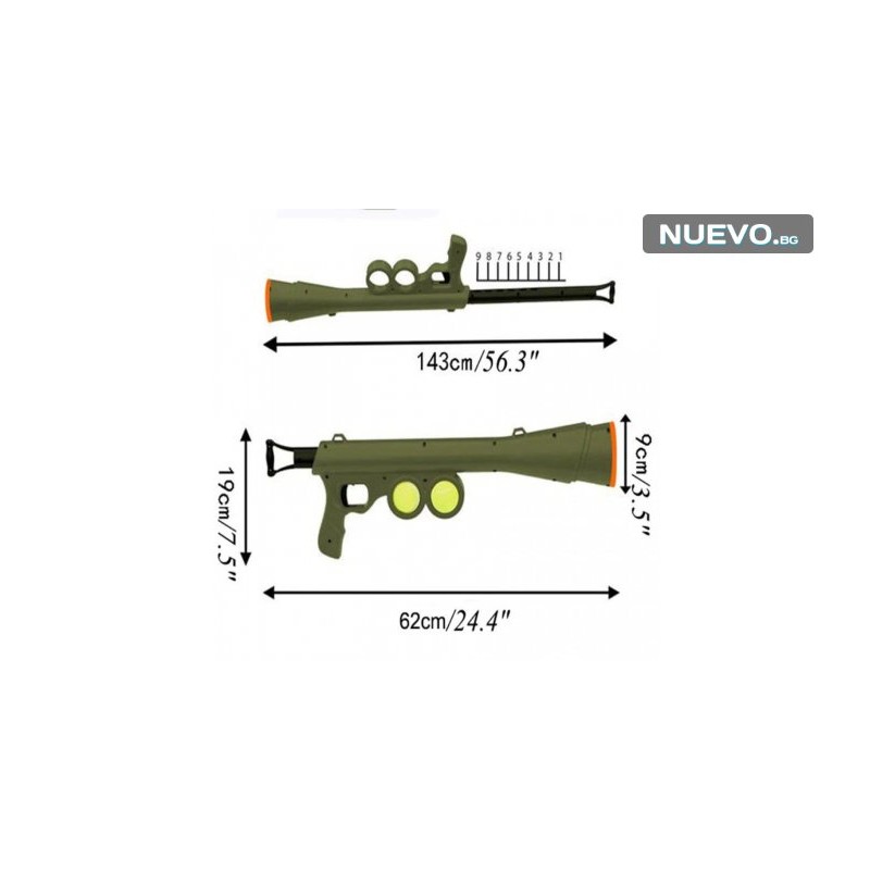 Базуката може да изхвърля тенис топките на повече от 20 метра, което означава повече тичане за вашето куче. Базуката разполага с пълнител от две тенис топки. Как работи? Изключително лесно – просто поставяте топките в пълнителя и дърпате спусъка. Базуката изстрелва топката на повече от 20 метра разстояние, а вашето куче хуква да я гони.