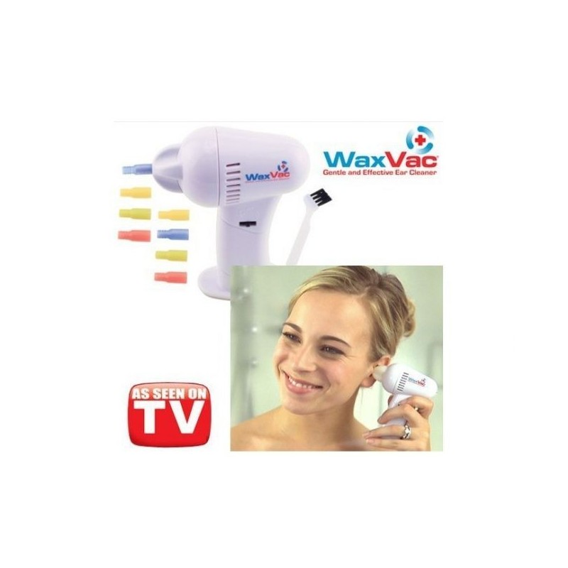 Специалистите потвърждават- чистенето с тампони и клечки за уши натъпква мръсотията навътре и крие опасности от инфектиране, раздразване и дори спукване на тъпанчето на ухото. Правилният метод е почистване с капки и разтвори, а сега и идеалният вариант- засмукване със специалния уред. WAX VAC има вградена електрическа турбина, която генерира специално изчислен, безопасен за ухото вакуум. Комплект силиконови накрайници осигуряват нежно проникване в ушните канали. Мек гъбовиден тампон осигурява плътно прилепване към ушната мида и предпазва от прекалено проникване. WAX VAC се захранва от 2 бр батерии 1.2-1.5V тип AA, които не са включени в комплекта.