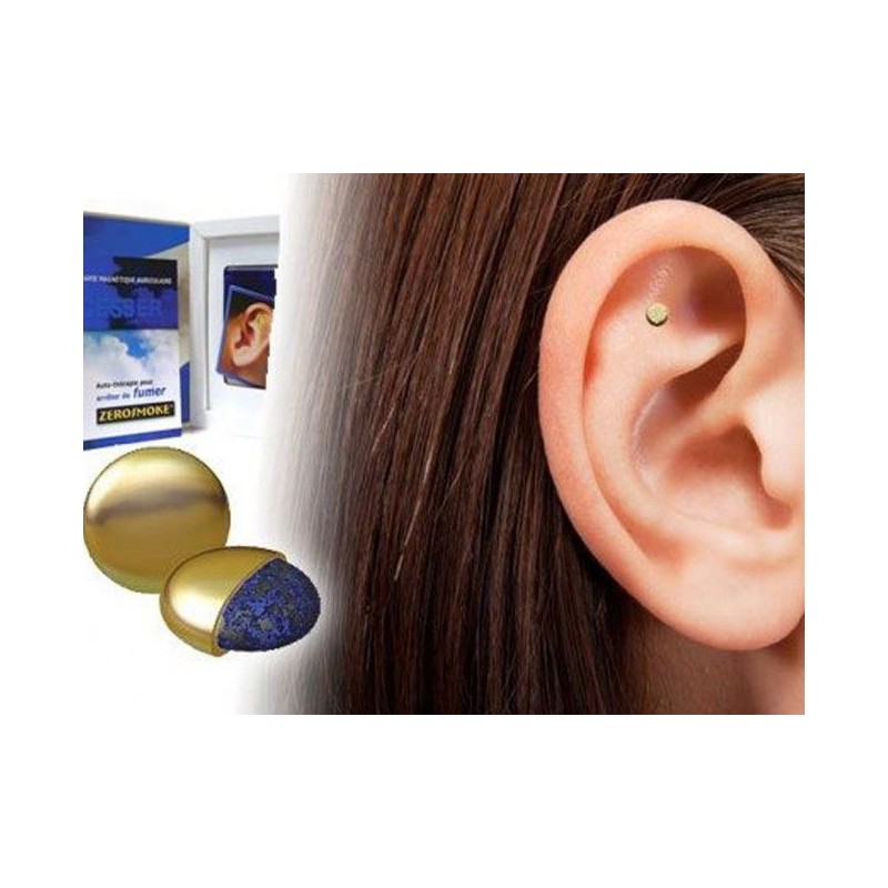 Големият магнит се поставя в предната горна част на ушната мида на лявото ухо, а по-малкия се поставя срещу него зад ухото (може да се премести и в долната част на ухото).
